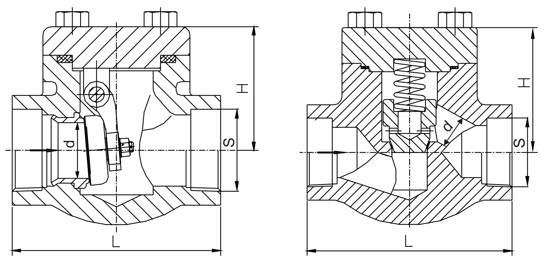 锻钢止回阀密封面采用铁基合金或司太立钴基硬质合金堆焊面成。不锈钢销轴与阀瓣连接采用内装式结构,性能优良,密封更可靠。产品广泛应用于石油、化工、制药、电力行业等各种工况的管路上防介质倒流作用。适用介质为水、油品、蒸汽、气体及某些腐蚀性液体介质等。